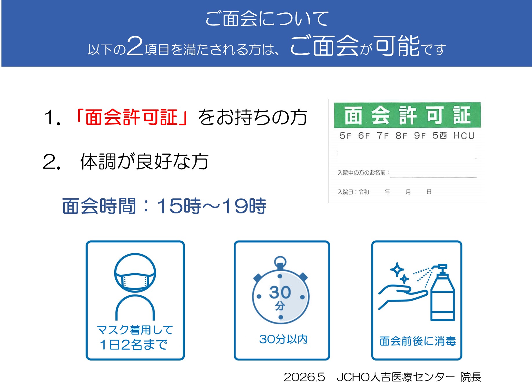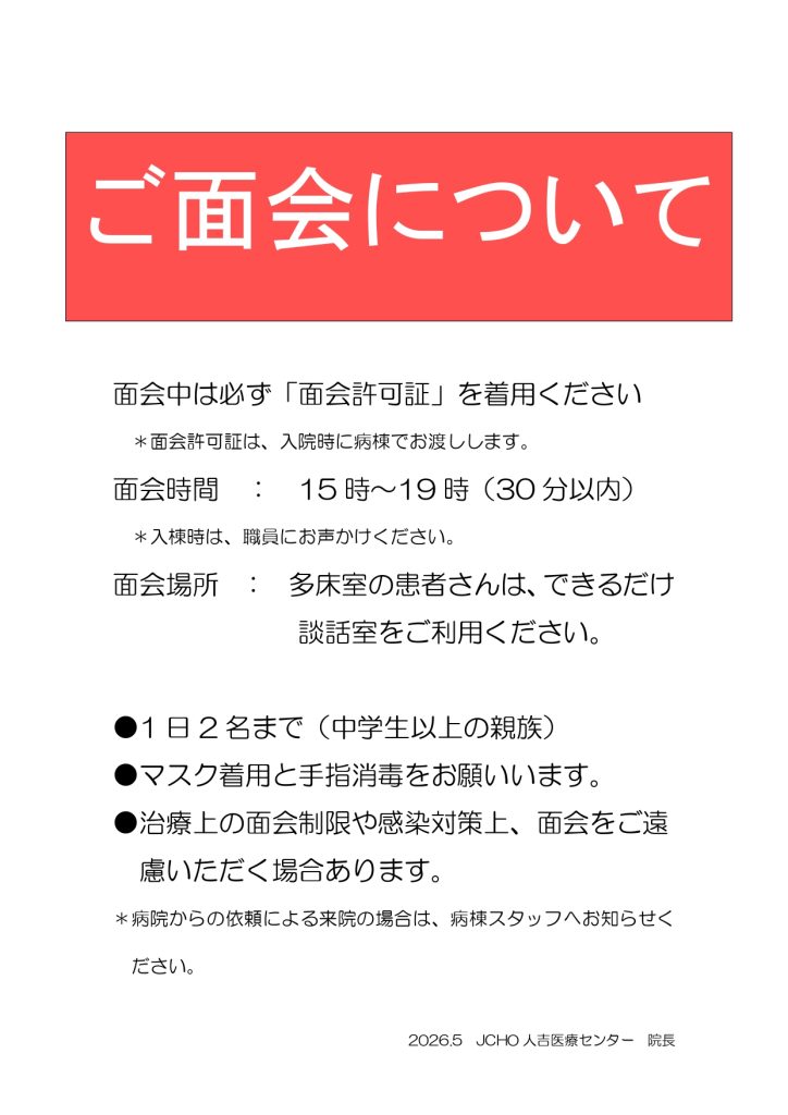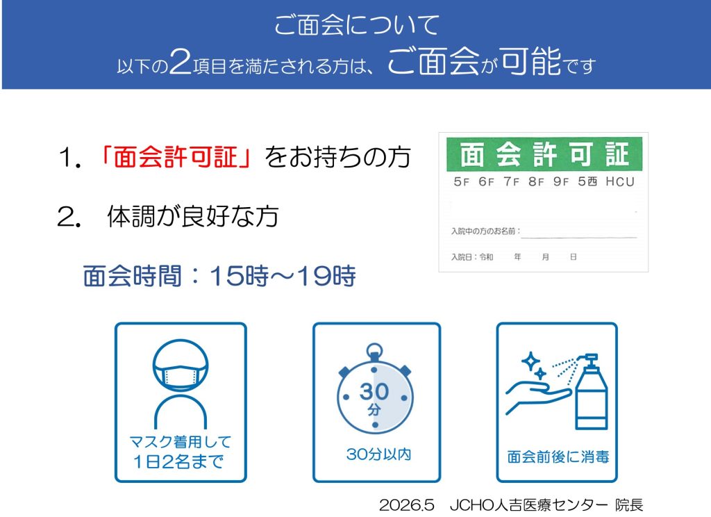 ※今後の感染発生状況により、面会制限は変更する場合があります。